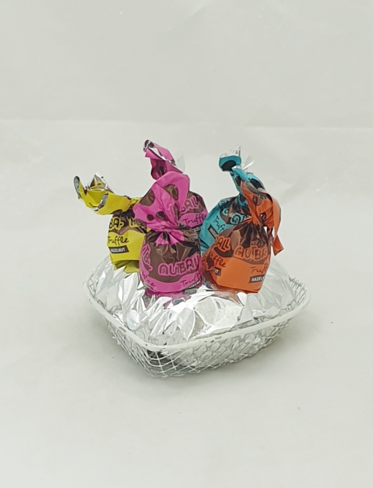 5 CHOCS ON WHITE BASKET