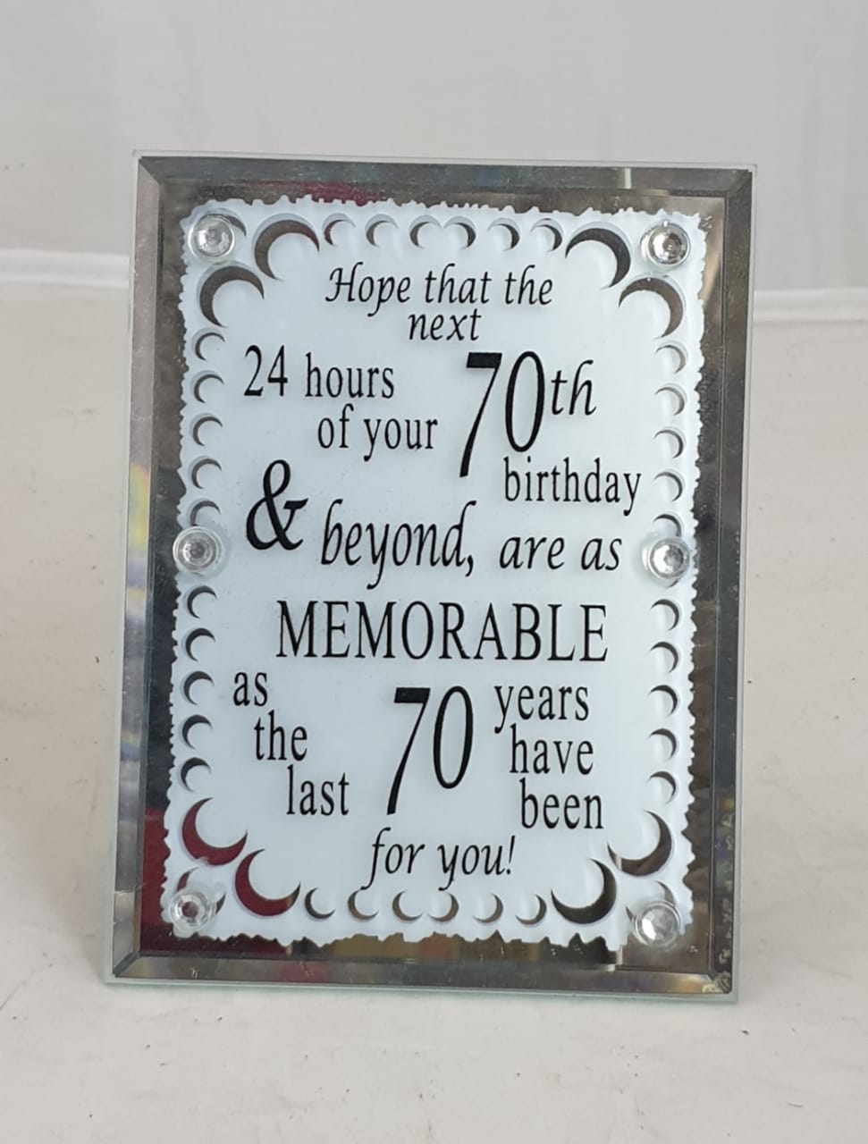PLAQUE MIRROR 70TH BIRTHDAY 10X7.5CM #BIRTHDAYS #WHITE WITH BLACK & SILVER #10X7.5CM