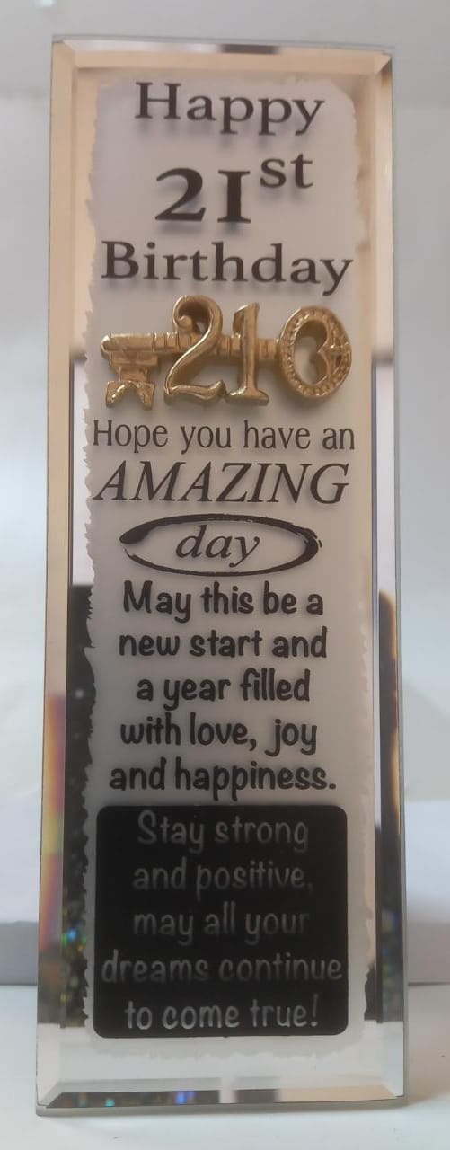 PLAQUE MIRROR HAPPY 21ST BIRTHDAY WITH KEY 6X18CM