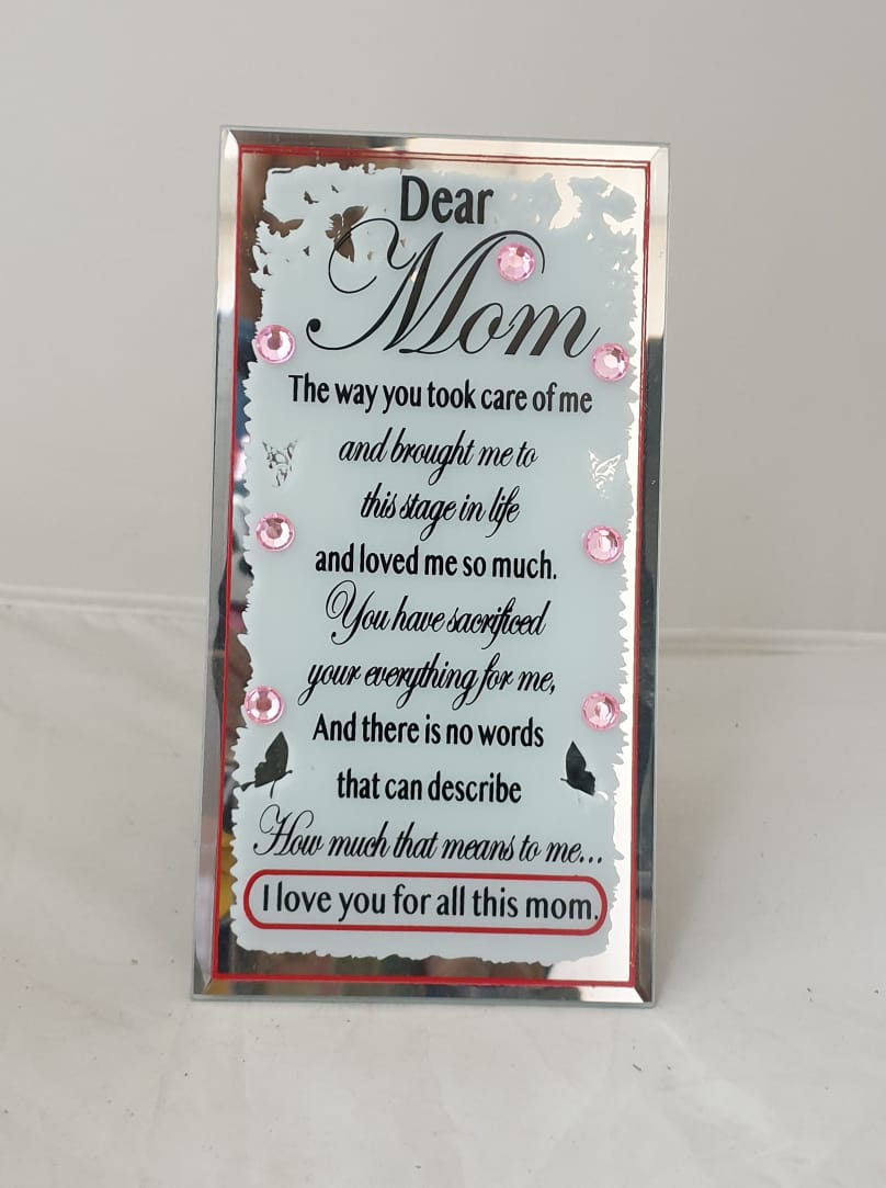 PLAQUE MIRROR DEAR MOM 9.5X18CM #MOTHERS DAY BIRTHDAYS #WHITE WITH BLACK & PINK 9.5X18CM