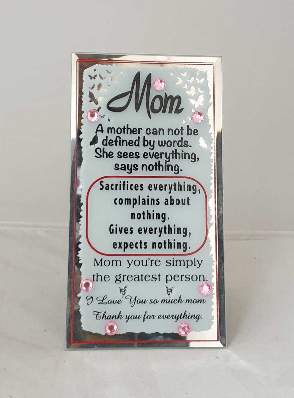 PLAQUE MIRROR MOM A MOTHER CAN..9.5X18CM #MOTHERS DAY #BIRTHDAY #WHITE WITH BLACK & PINK #9.5X18CM